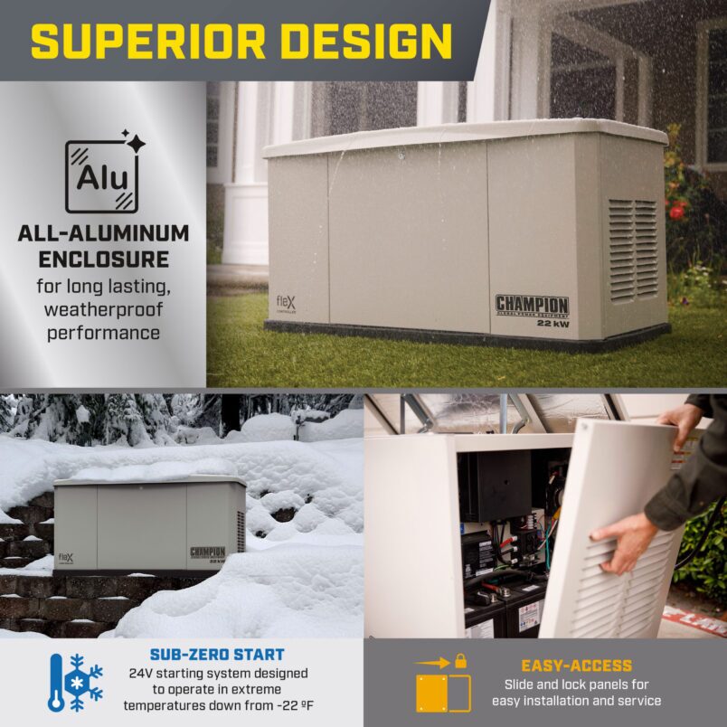 Champion standby generators are engineered for absolute reliability, providing continuous whole-home power during outages to keep your life running smoothly.